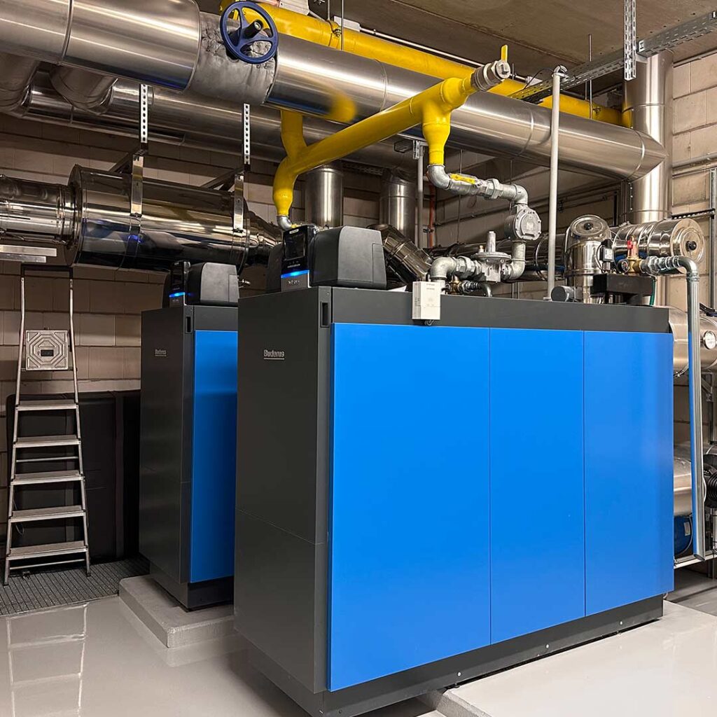 Für unseren langjährigen Kunden Big Dutchman aus Calveslage führten wir eine Sanierung der Heizkesselanlage durch. Nach Demontage der alten Anlage wurden zwei neue Gasbrennwertkessel mit einer Heizleistung von je 500 kW installiert. Die neue Anlage versorgt in Zukunft das Bürogebäude sowie diverse Hallen mit Wärme.