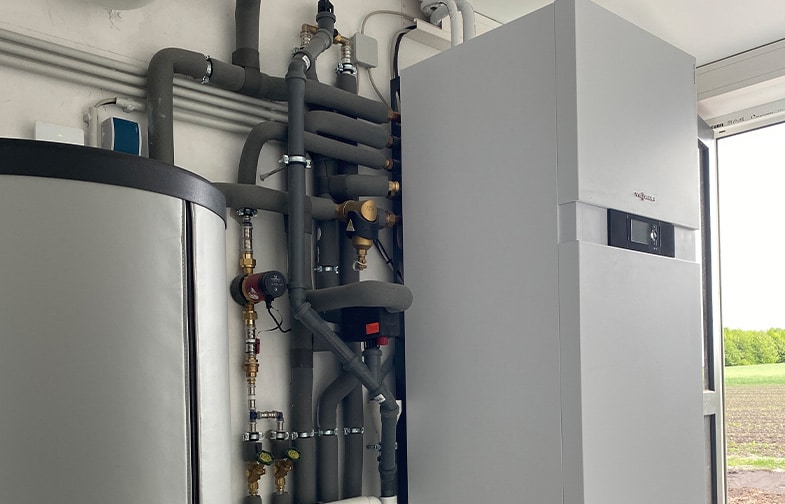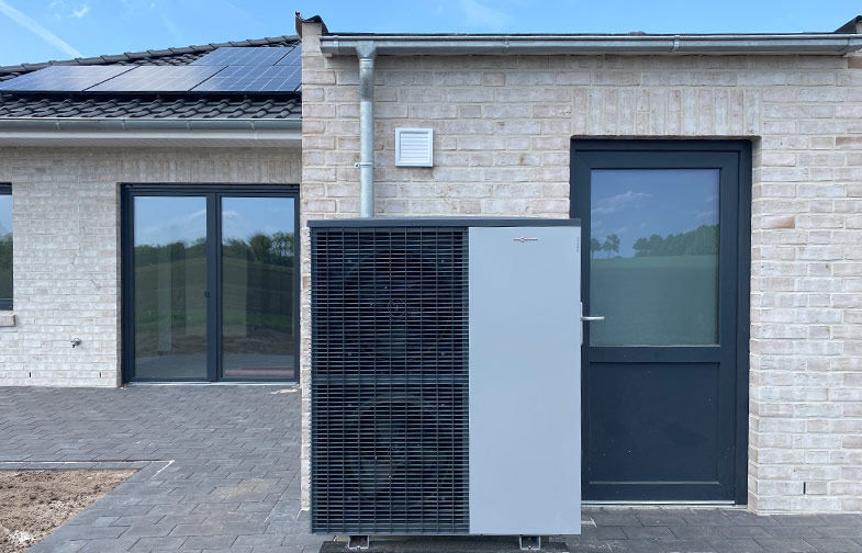 Dieser Neubau wurde nach hohen Ansprüchen an Energieeffizienz errichtet. Anders als konventionelle Heizungen nutzt die Wärmepumpe die Umgebungswärme (hier Umgebungsluft) als Wärmequelle. Um einen Großteil der für diesen Neubau benötigten Energie, unter Berücksichtigung eines möglichst hohen Autarkiegrades, selbst erzeugen zu können, haben wir auf dem Dach eine PV-Anlage installiert, die unter anderem den Strom zum Antrieb der Wärmepumpe liefert. Zur Erhöhung des Autarkiegrades wurde zusätzlich ein Batteriespeicher in technischer Abstimmung zur PV-Anlage errichtet. Mithilfe einer virtuellen Cloud kann nun auch der überschüssige Strom aus dem Sommer im Winter abgerufen werden. Somit wird ein ganzheitlicher Zugang zum eigenen Ökostrom ermöglicht. Ein starkes Energiekonzept aus PV, Batteriespeicher und Wärmepumpe.